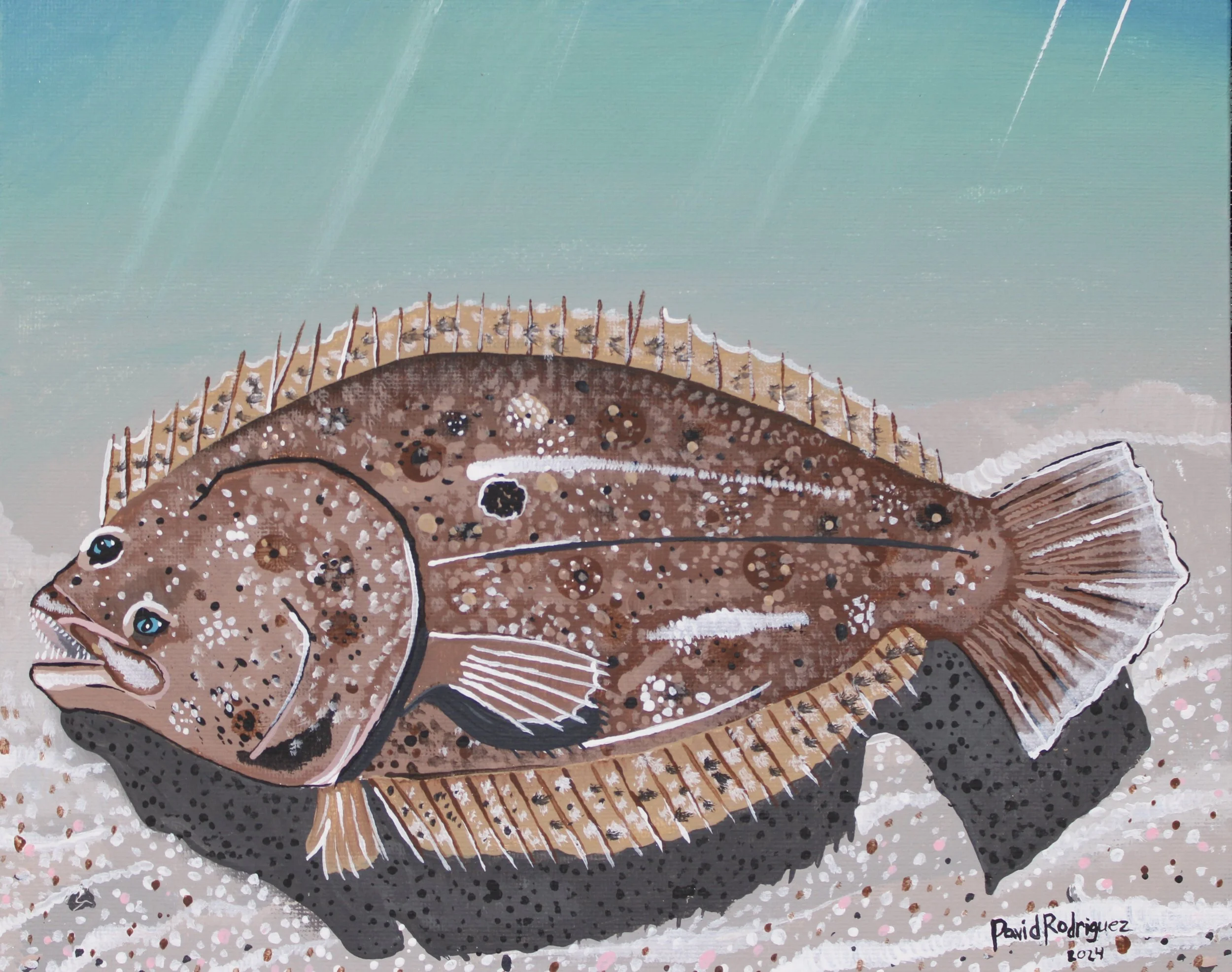 Image 1 of 1 Bedded Flounder $85.00 Acrylic on 8×10 canvas board Purchase Added! Acrylic on 8×10 canvas board