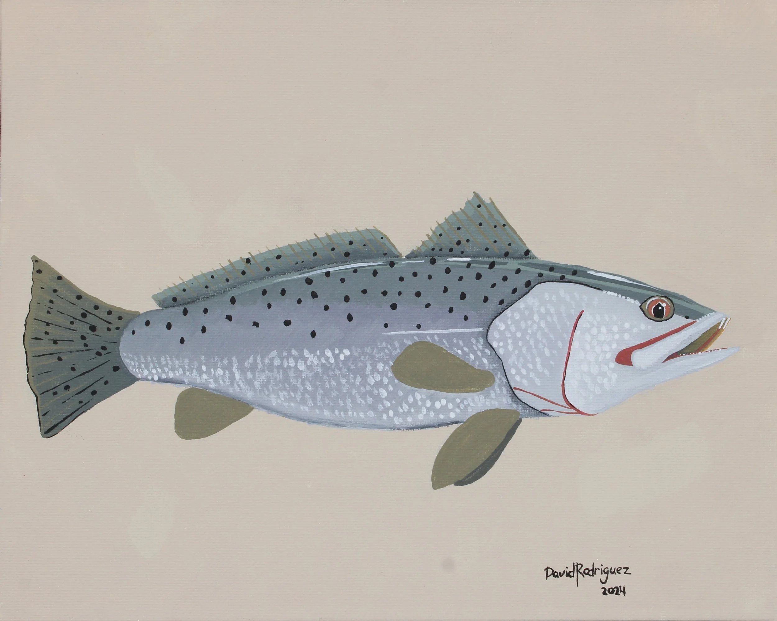 Image 1 of 1 Speckled Trout Classic $80.00 Acrylic on 8×10 canvas board Purchase Added! Acrylic on 8×10 canvas board